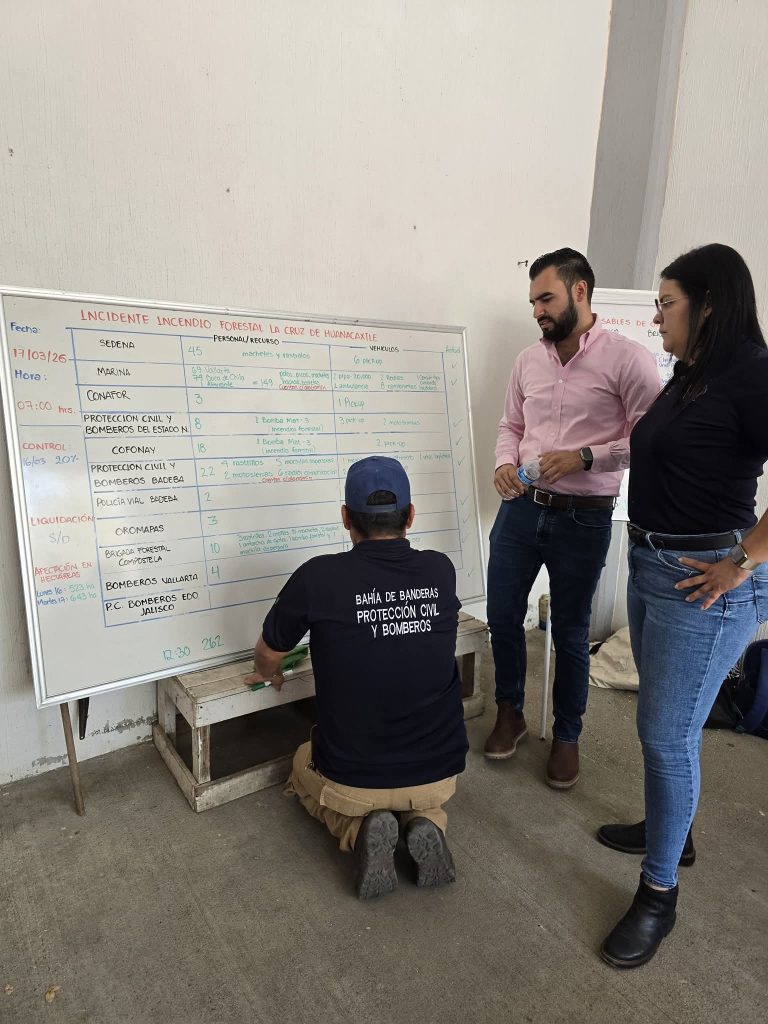 17 de marzo de 2026.- Este fin de semana, Bahía de Banderas vivió conflagraciones en diversas zonas del municipio; ante esta situación, el equipo que encabeza Jesús Mejía no ha dejado de asistir a los valientes bomberos y de otras corporaciones que están ganándole terreno al fuego.