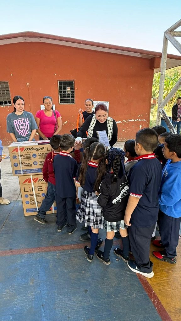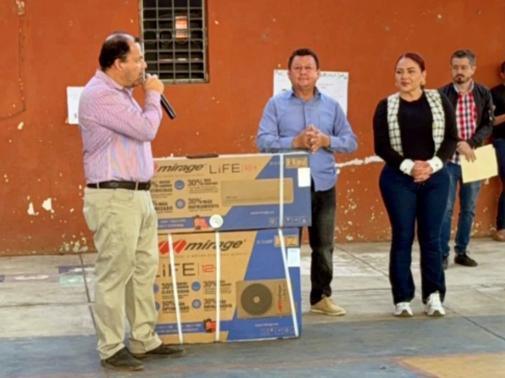 “Hoy tuve el gusto de visitar la escuela Plan de Ayutla en Mecatán, donde hice entrega de un aire acondicionado para el grupo de 1° A. Un pequeño granito de arena para que nuestros niños tengan espacios cómodos y dignos para aprender, antes de que lleguen los calores», mencionó.