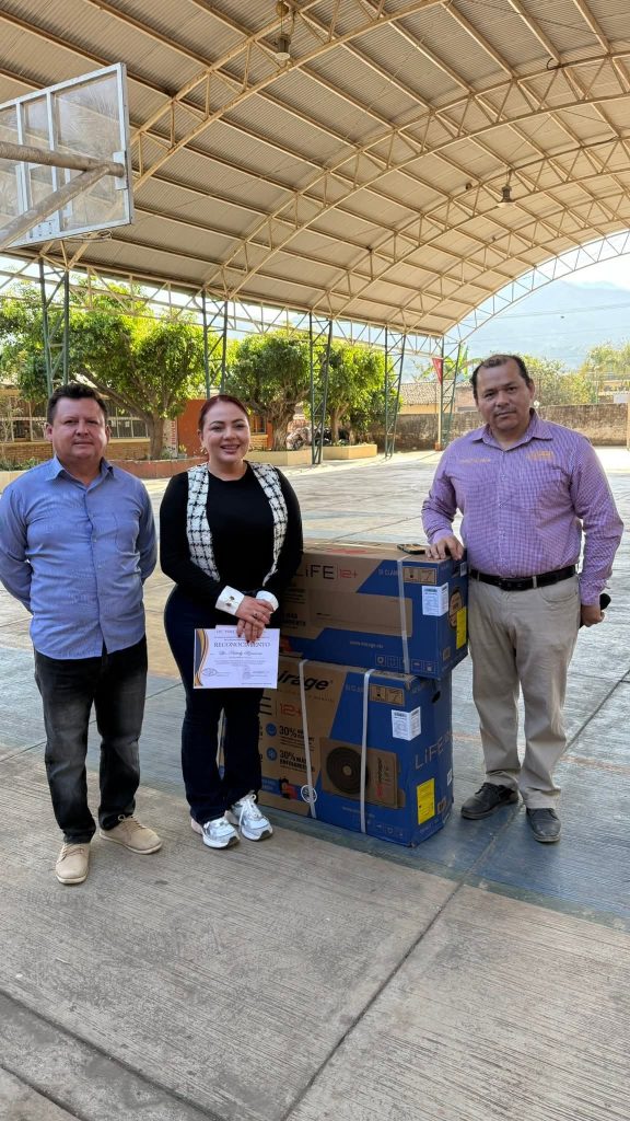 24 de marzo de 2026.- Nataly Tizcareño Lara anunció otro compromiso cumplido; se refirió a un aire acondicionado para la escuela Plan de Ayutla en Mecatán, en su querido San Blas; beneficiando a la comunidad escolar.